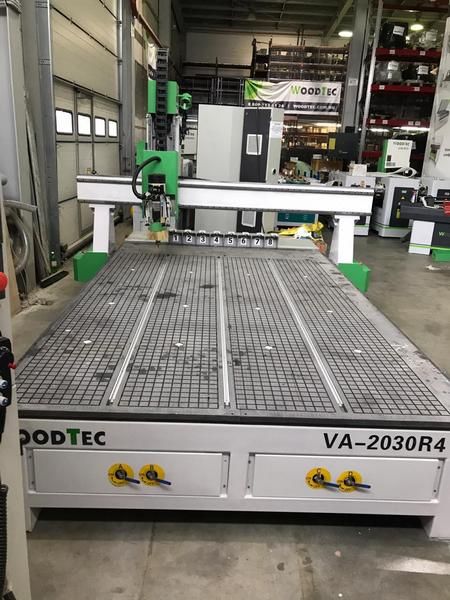 Алюминиевый рабочий стол покрытый износостойким пластиком, специально разработанным для совместного использования с вакуумным насосом. Такой стол позволяет быстро и неподвижно установить заготовку на рабочий стол за счет мощной вакуумной станции 5,5 кВт. Также заготовку на стол можно крепить механически при помощи струбцин, для этого стол разделили на 4 зоны с помощью Т-образного профиля. В отличии от многих этот вакуумный насос роторно-пластинчатого принципа, который работает в разы дольше чем все конкуренты.