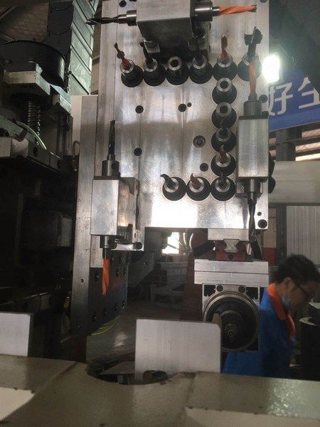 Присадочные шпиндели приводятся во вращение при помощи электродвигателя, в рабочее положение выводятся при помощи пневматических цилиндров, а далее при помощи серводвигателя подаются на заданную глубину сверления.