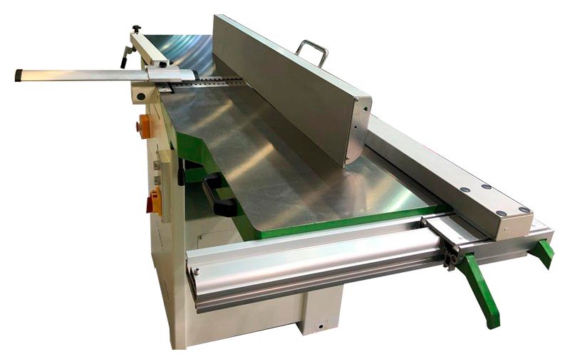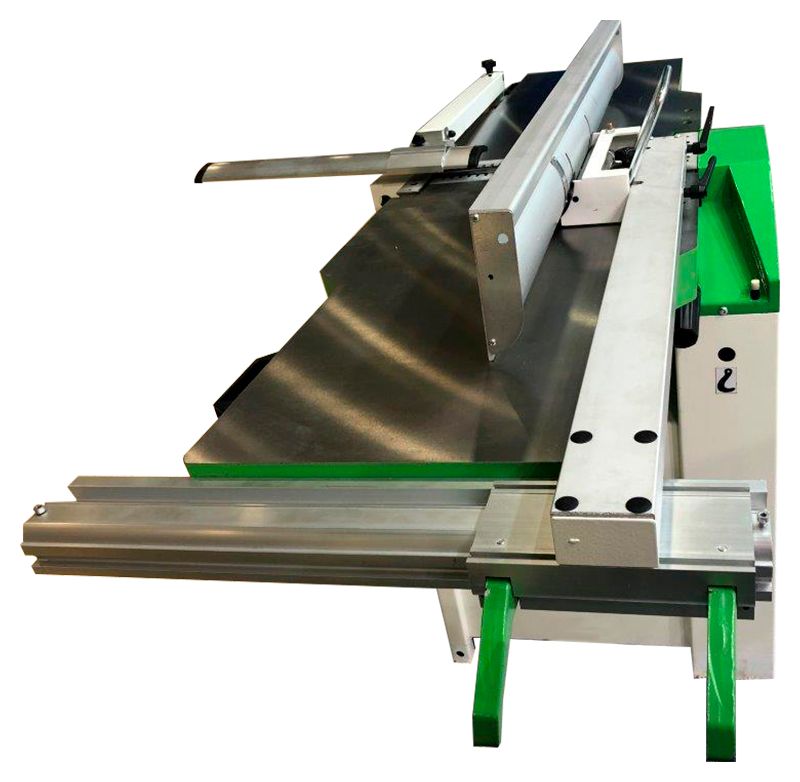 Снабжен профессиональной упорной линейкой (которая крепится к торцу подающего стола) и дает возможность устанавливать станок возле стены, тем самым не теряя площадь в цеху.