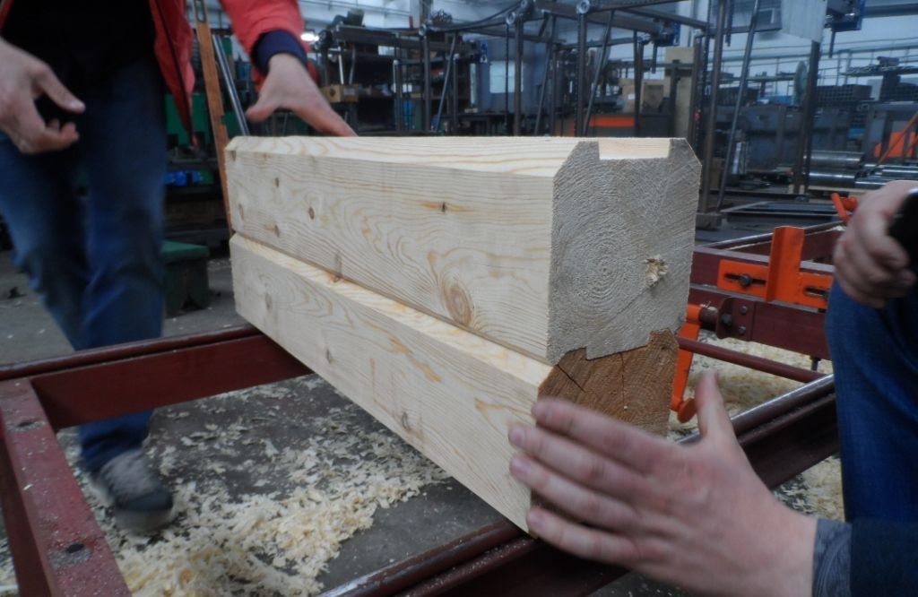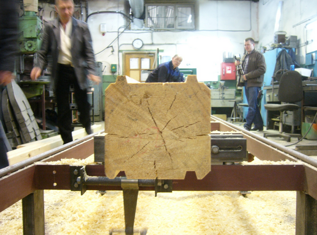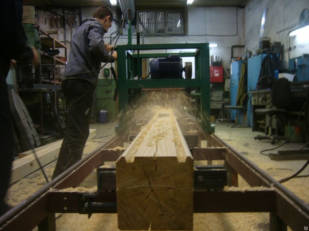 Данный станок для профилирования бруса характеризуется тем, что заготовка в процессе изготовления получает шип и паз. Кроме того, образуются две строганные ровные стороны. Данные стороны профильного бруса в зависимости от предназначения могут иметь ровную форму либо полукруглую, если доски будут использованы для строительства домов типа «блок-хаус».