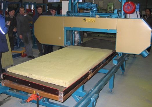 Ленточнопильный станок ЛП-80-ТП для резки минеральной ваты позволяет производить послойный распил блоков минеральной (каменной) ваты или ковров минеральной ваты.