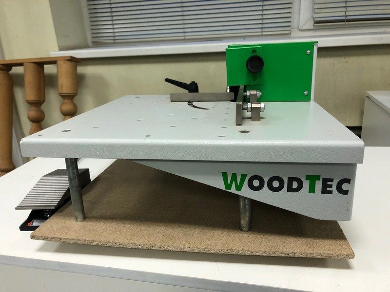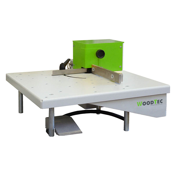 Основной характеристикой устройства является его простота и точность, а также возможность обработки с углом. Устройство, возможно, использовать как самостоятельную единицу, установив его на любую плоскую поверхность, так и прикрепив его на станину кромкооблицовочного станка или на станину фрезерного станка для снятия свесов кромочного материала по пласти. Обработка производится фрезерованием дисковой фрезой. Рабочий цикл осуществляется нажатием управляющей педали.