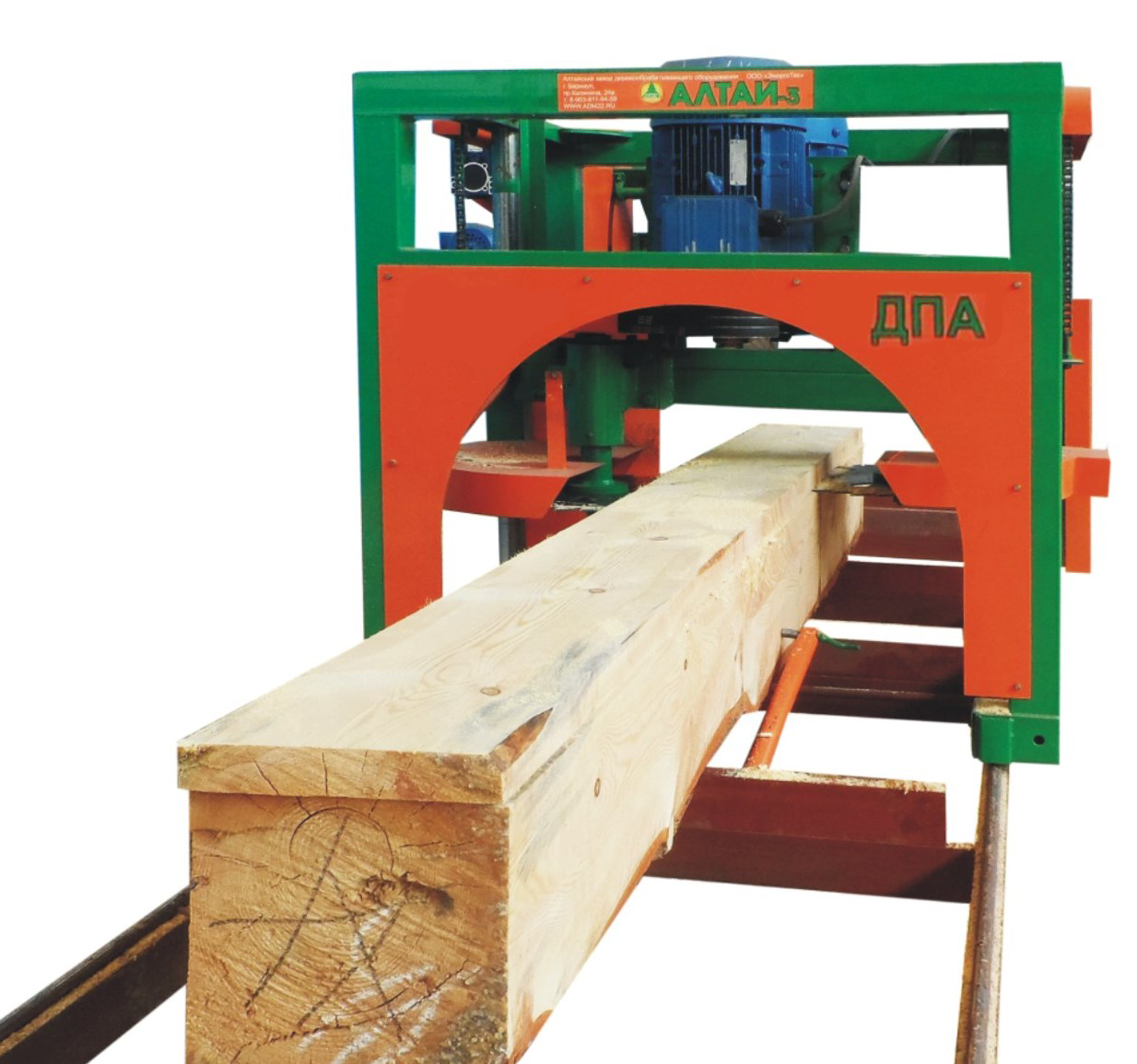 Горизонтальная пилорама Триумф Г2П-500/Пилорама дисковая Алтай ДПА-500 предназначена для продольной распиловки круглого леса (пиловочника) на пиломатериал-доска обрезная и необрезная, брус, брусок, шпала,лафет и т. п. Пилораму Алтай ДПА можно использовать в качестве станка первого ряда ля подготовки лафета с последующей распиловкой лафета на многопильном станке.