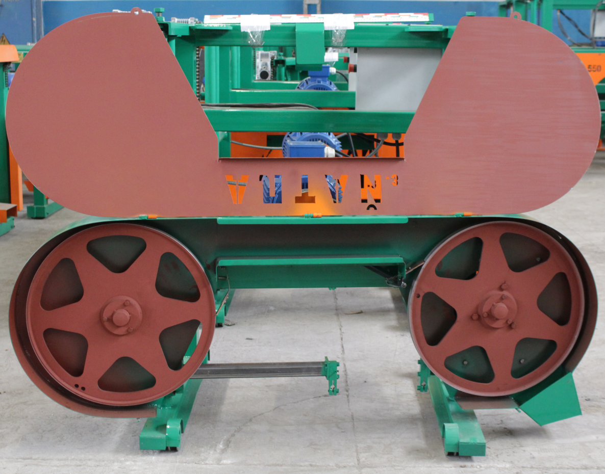 Запил ленты в бревно осуществляется под углом 8 градусов, что позволяет облегчить пиление и уменьшить нагрузку на пильную ленту.Натяжение пильной ленты производится гидравлической системой с контролем натяжения по манометру.