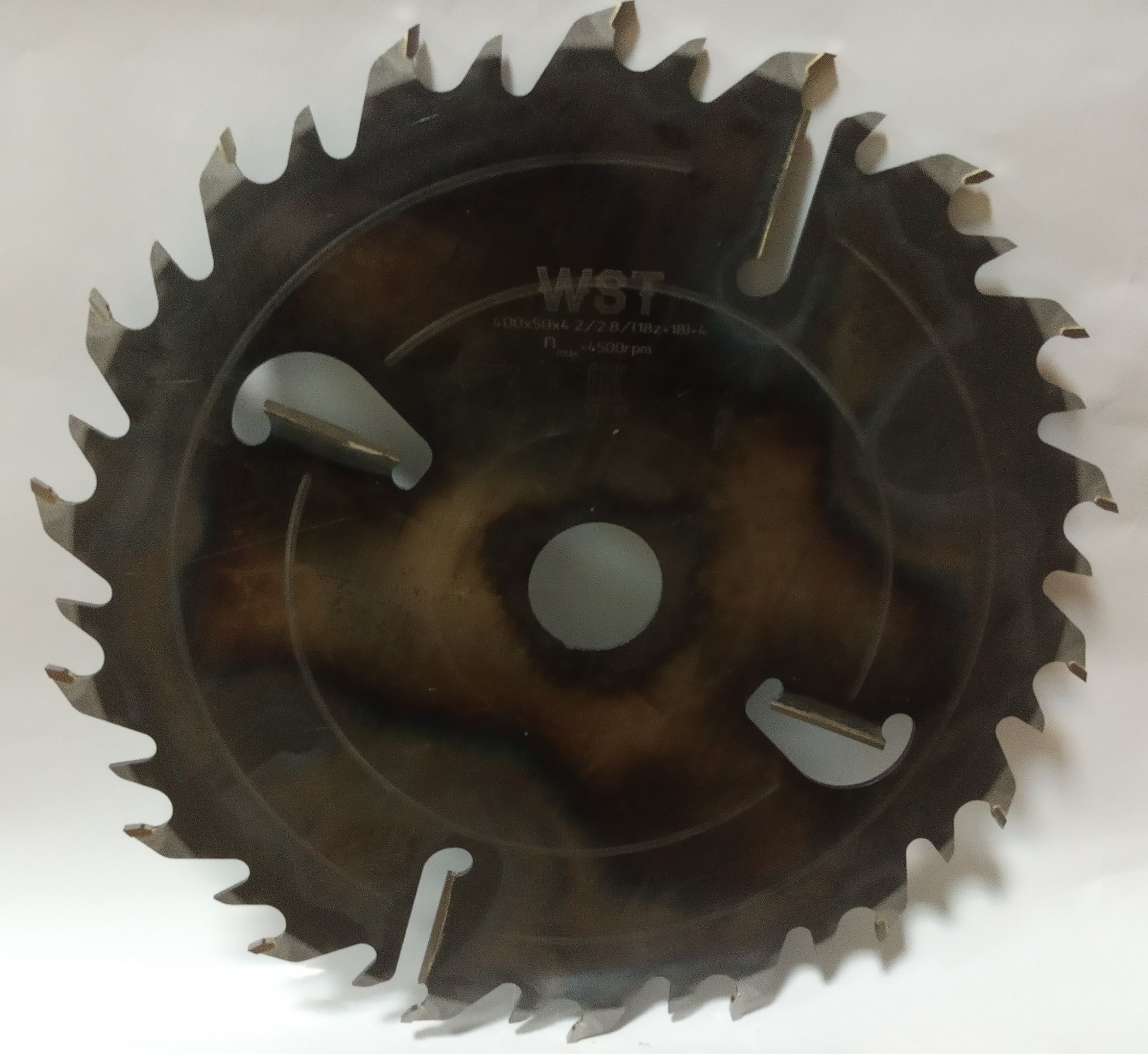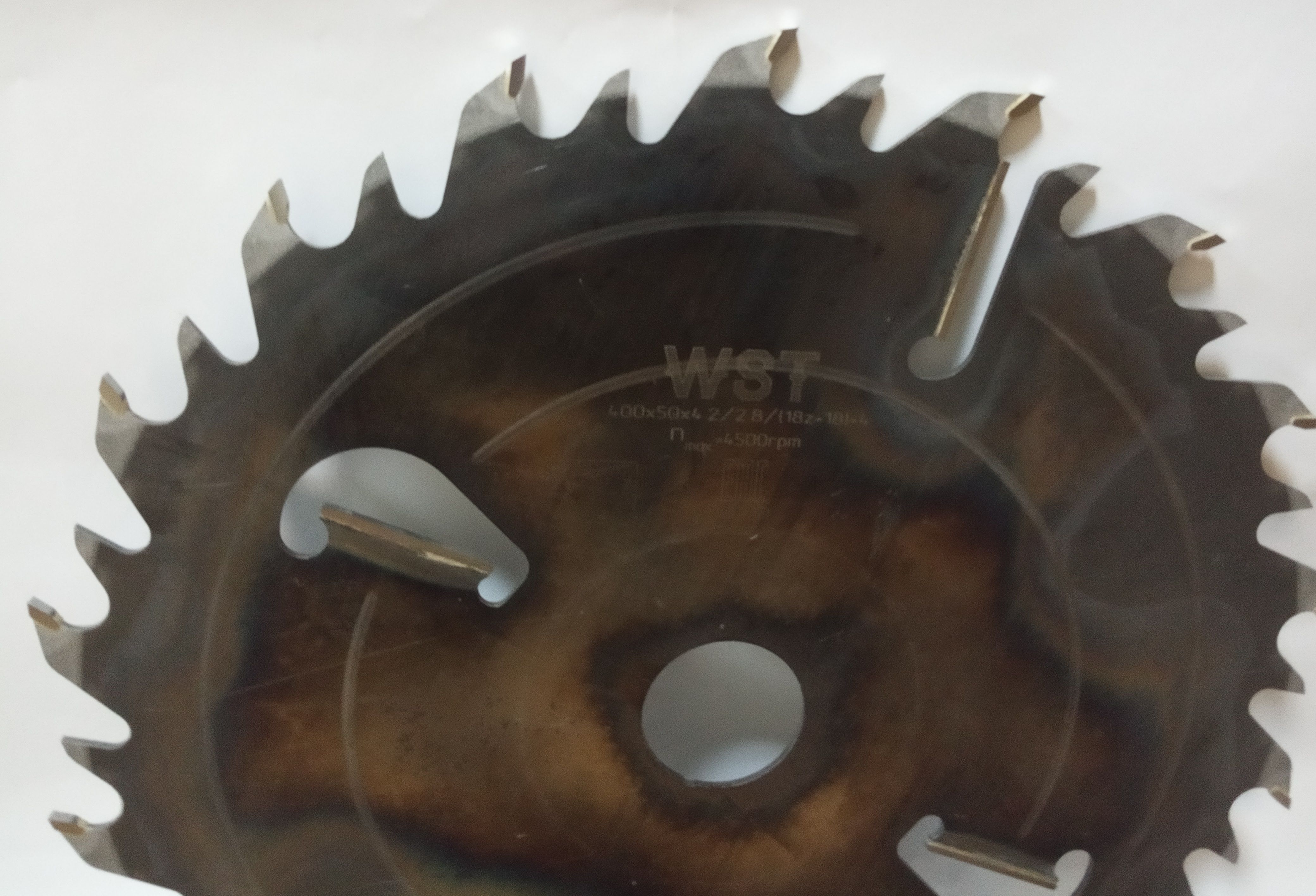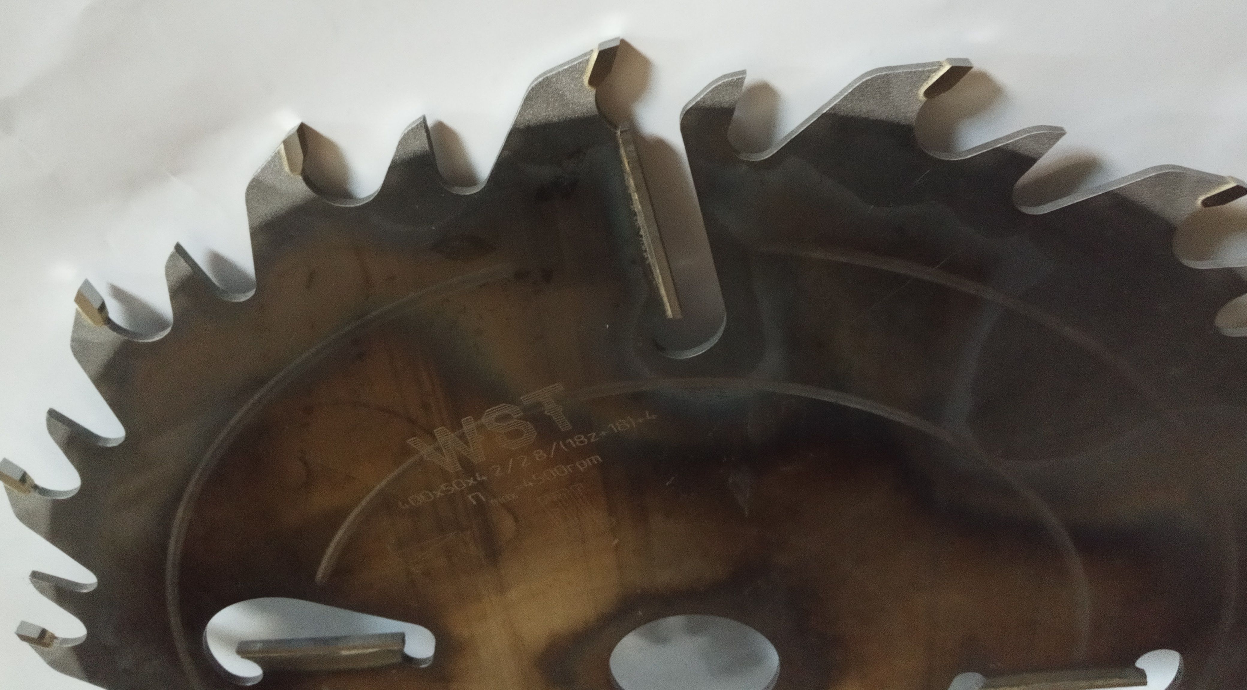 Диаметр диска 400мм, посадочный диаметр 50мм, количество зубьев с напайками 18, промежуточных зубьев 18, подрезных ножа 4шт. Толщина с напайкой 4,2мм, толщина тела пилы 2.8мм
