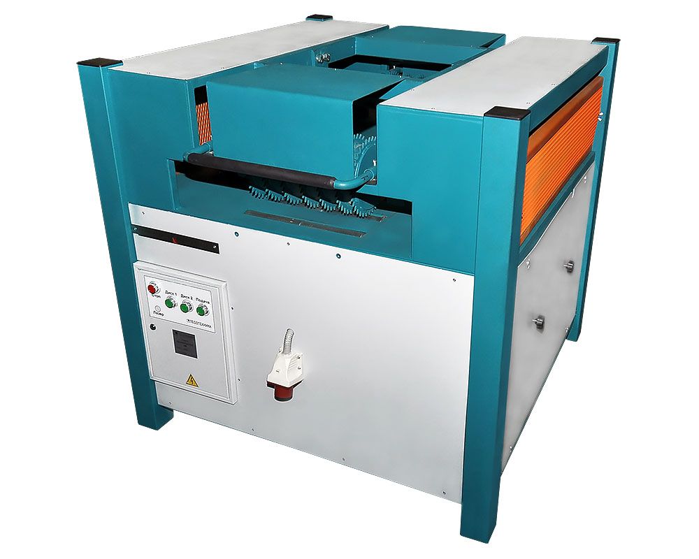 Пиление производится двумя дисковыми пилами диаметром 400 мм, одна из которых неподвижна, а вторая имеет плавную регулировку. Использование дисковых пил диаметром 400 мм уменьшает толщину пропила и позволяет экономить на инструменте.