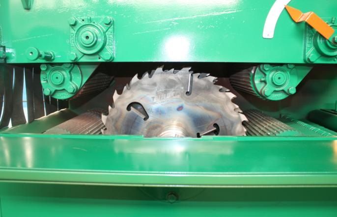 Для распиловки используются дисковые пилы диаметром от 350 до 450 мм с посадкой 75 мм имеющие два шпоночных паза.